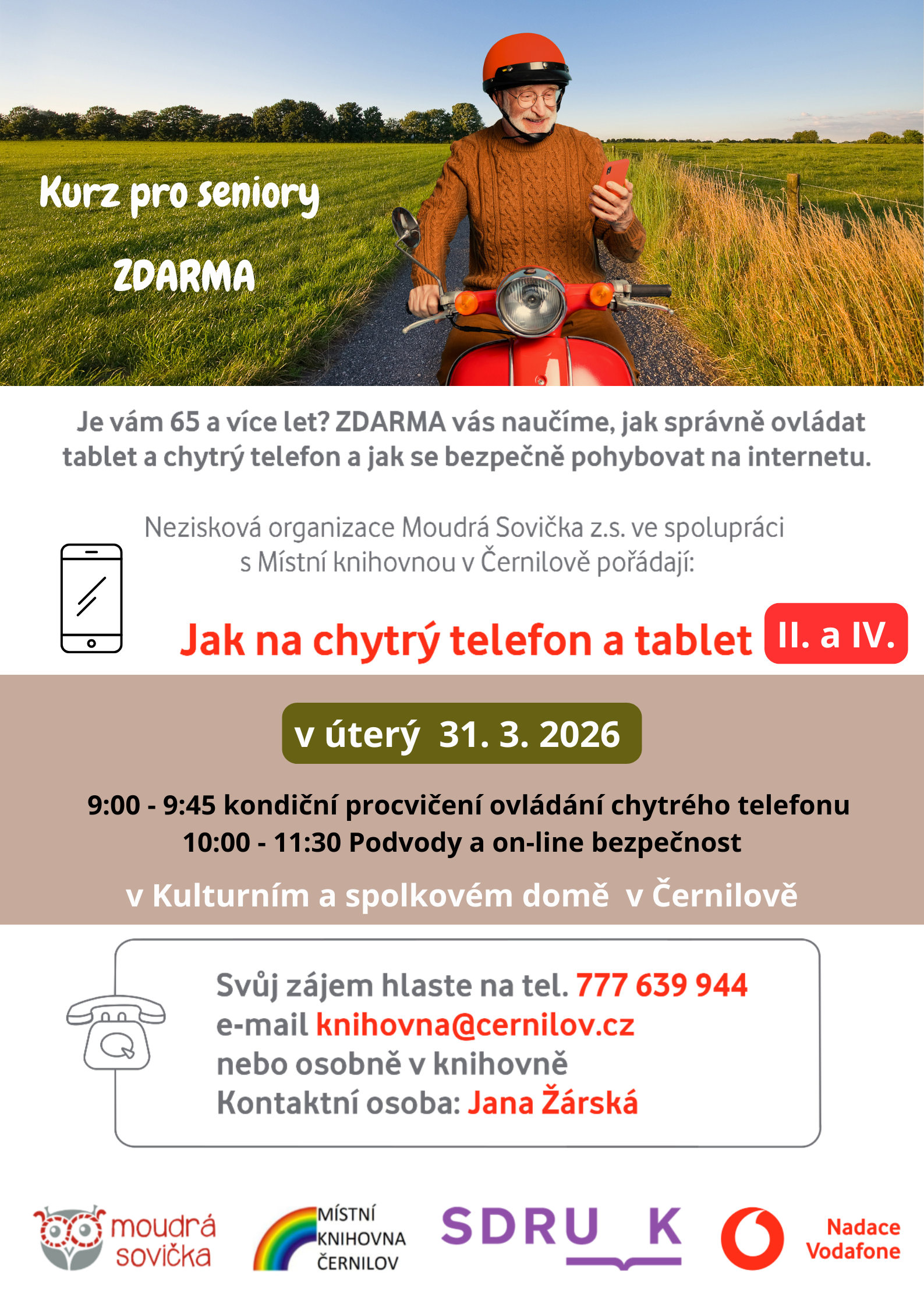 Prosíme o přihlášení v Místní knihovně, tel. 777 639 944 nebo e-mailem: knihovna@cernilov.cz