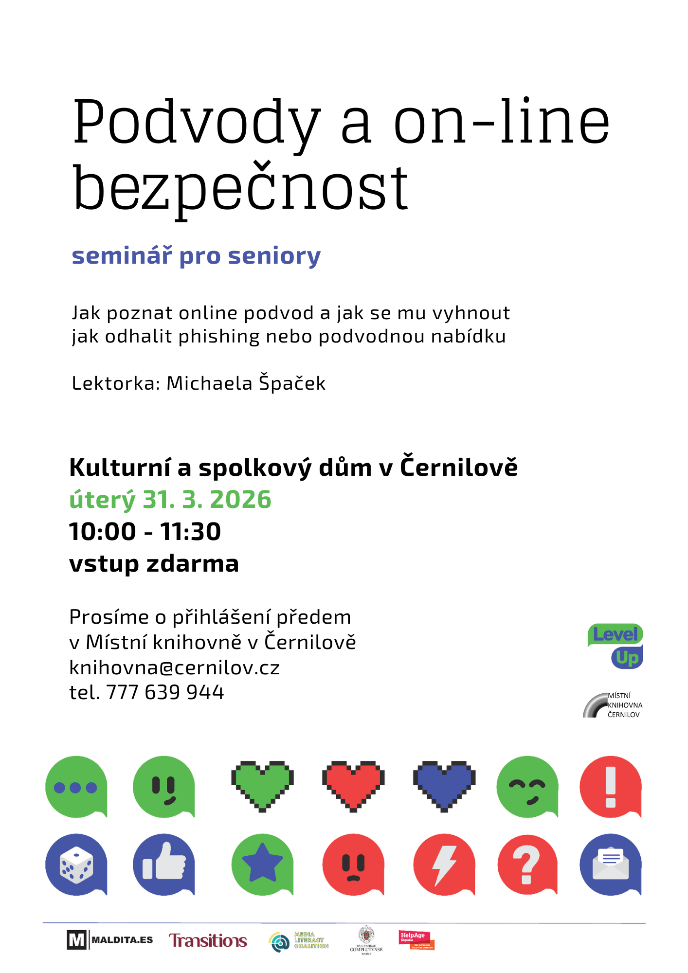 Prosíme o přihlášení předem v Místní knihovně v Černilově, knihovna@cernilov.cz, tel. 777 639 944